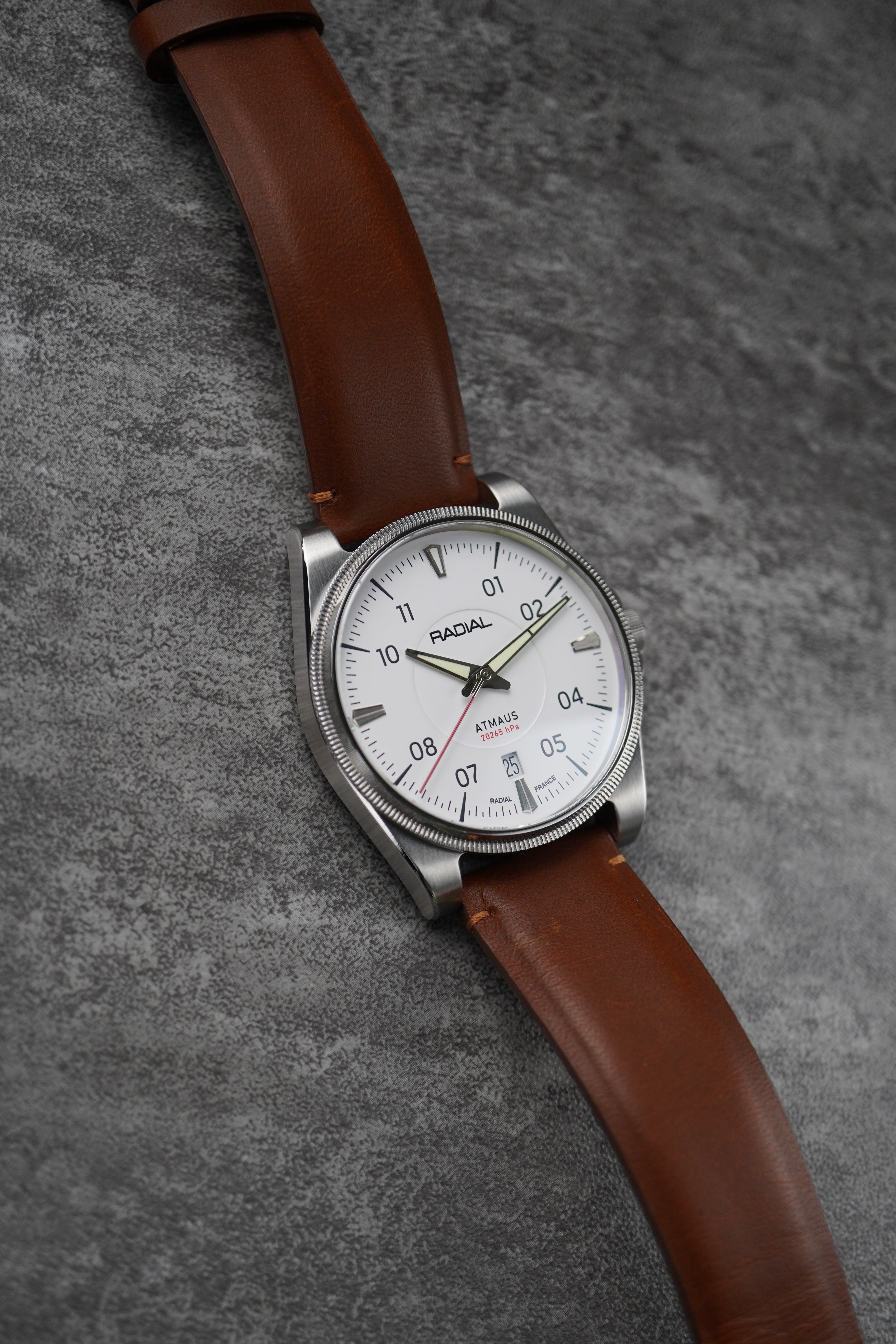 Les montres automatiques Radial Atmaus, CONÇUES ET ASSEMBLÉES en atelier à Bordeaux, s’inspirent de la structure minimaliste des montres d’aviation classiques, tout en intégrant une esthétique moderne et claire. Equipée d'un mouvement automatique SWISS MADE de la manufacture Sellita (SW200-1), cette montre parfaitement étanche incarne la fiabilité et la durabilité.