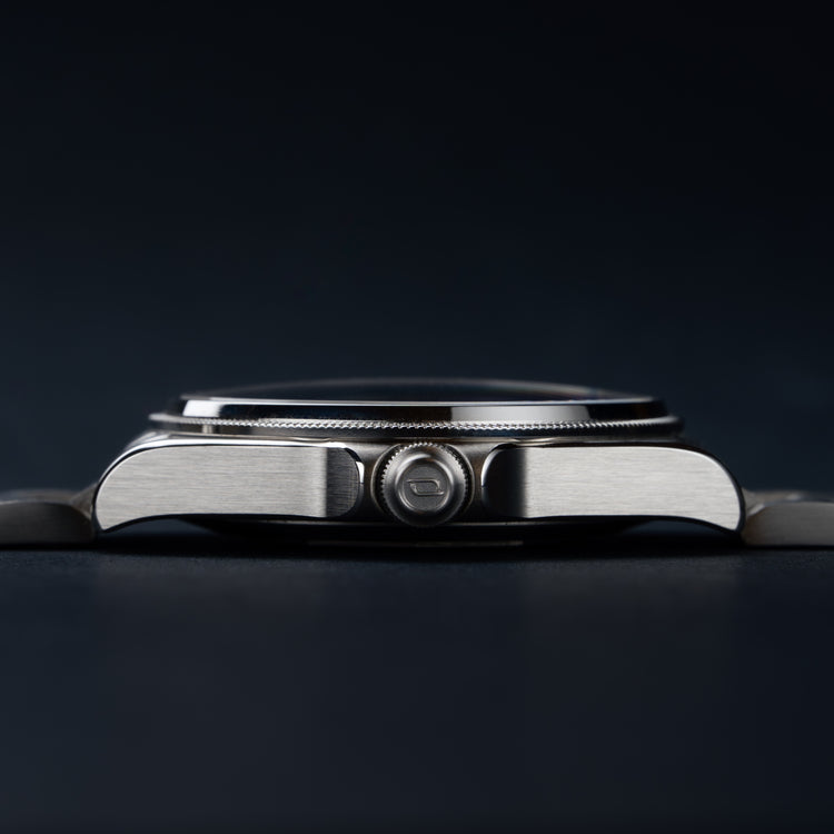 - La lunette au design original est striée sur les côtés avec une finition polie sur le dessus, offrant une ouverture de cadran maximale et une lisibilité accrue.