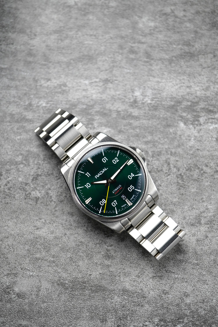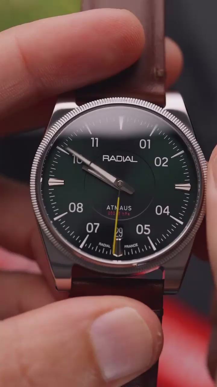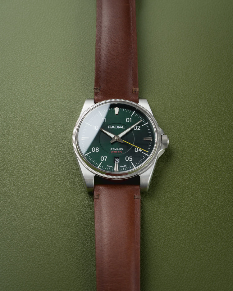 Notre montre automatique de pilote, conçue et assemblée en France est animée par le robuste calibre automatique suisse Sellita SW200-1. Elle incarne l’alliance parfaite entre technique et élégance sophistiquée. Avec un design épuré et des matériaux d’exception, elle se positionne comme l’accessoire ultime des voyageurs aériens exigeants. Son cadran au design original s'inspire de celui d'une boussole ou d'un instrument de bord, alliant esthétisme et fonctionnalité dans un esprit d'aventure et de précision.